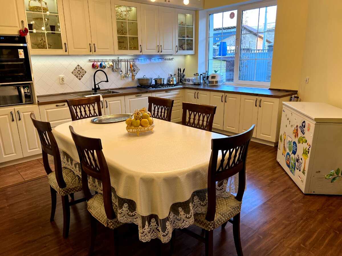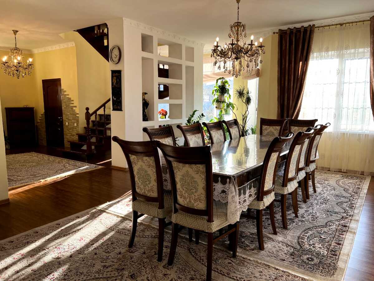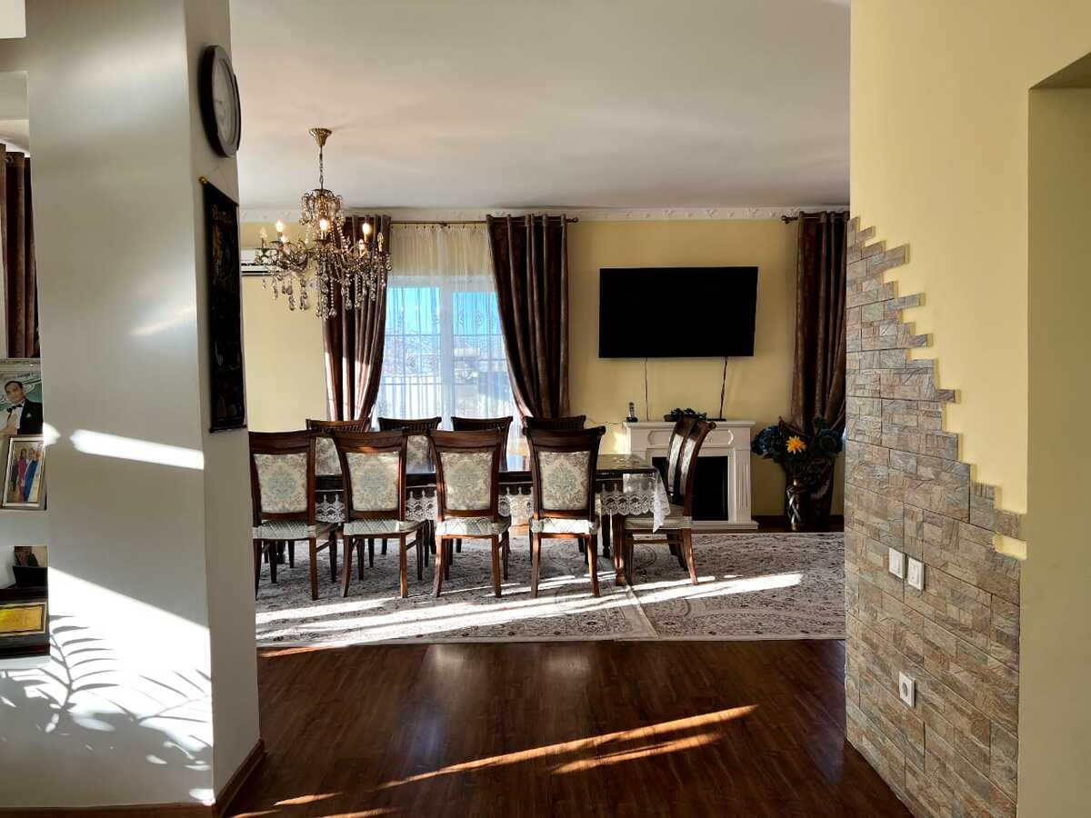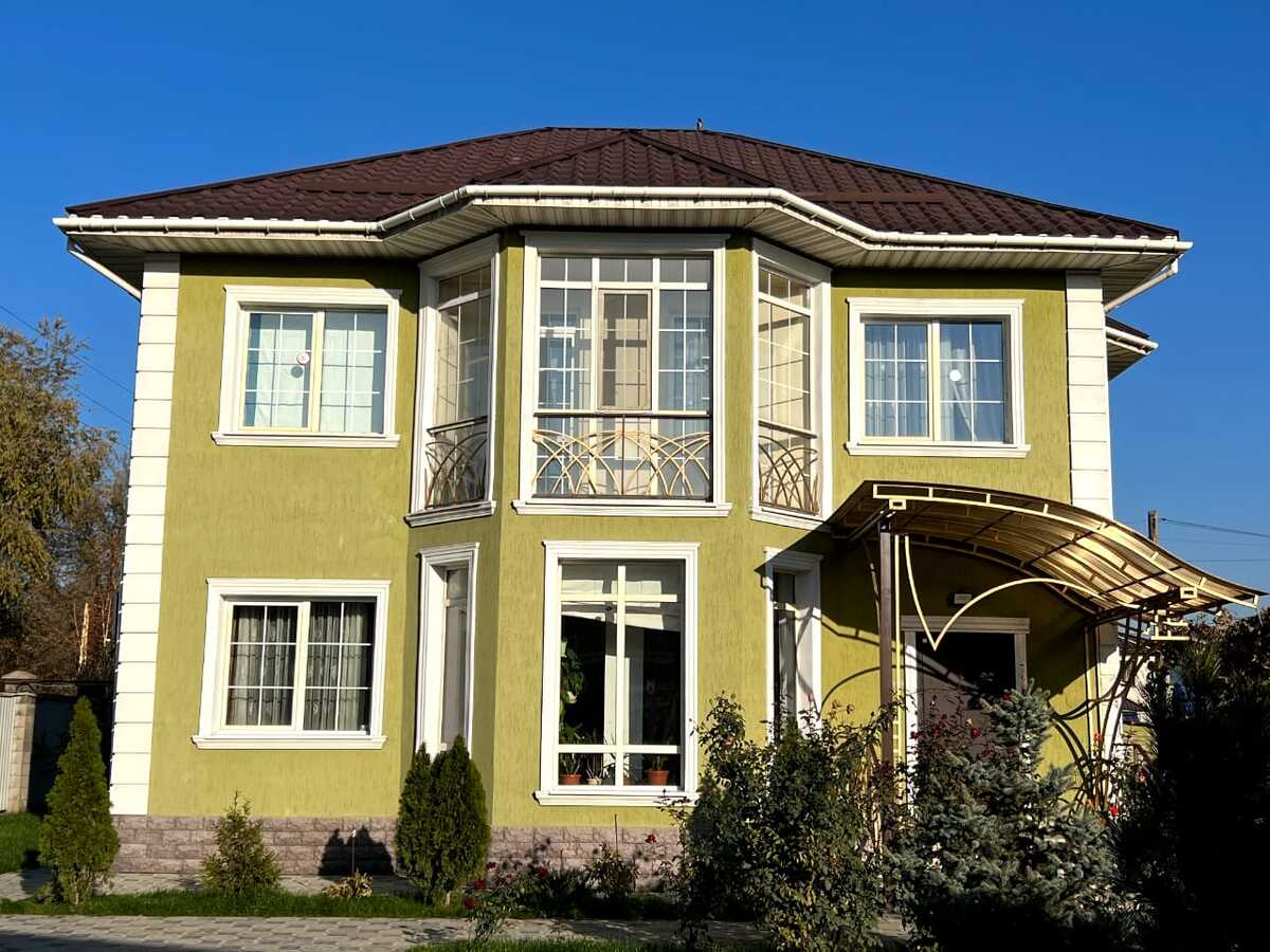 Во дворе красивый зеленый газон, система автополива на 4 сотки и внутренняя парковка на 4 авто (+ снаружи еще на 3 авто). Вдоль канала БАК имеется отдельный огород на 6 соток со множеством плодовых деревьев, поливным насосом. Дом находится на центральной асфальтированной и освещенной улице, без заездов в узкие переулки. До центра города можно проехать по Восточке без единого светофора за 20-30мин. Недавно рядом открылся огромный ТРЦ Aport-East, там же работает большой СПА-центр Sanremo. Доставка Яндекс Еда за 30мин. В 200м от дома остановка, а также зона отдыха Maldives с бассейнами и кафе. Прямая дорога в аэропорт (6-7мин) и курорты Табаган/Ой-Карагай/Лесная Сказка (20мин). В 2027 году начинают строить вторую ветку метро со станцией Апорт. Детсад через дорогу, также рядом открывается новая Comfort школа на 2000 мест.