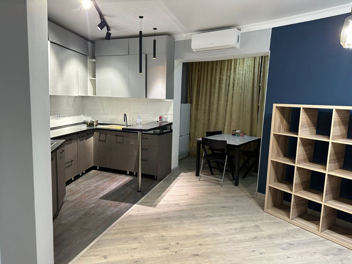 Есть стиральная машина, два кондиционера, светильники с тёплым и холодным светом. Всё продумано для комфортного проживания. Заехал и живи. Не требует вложений.