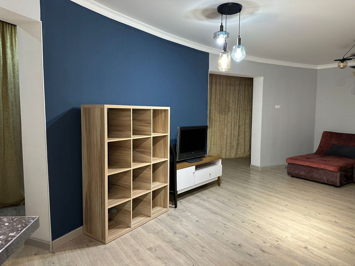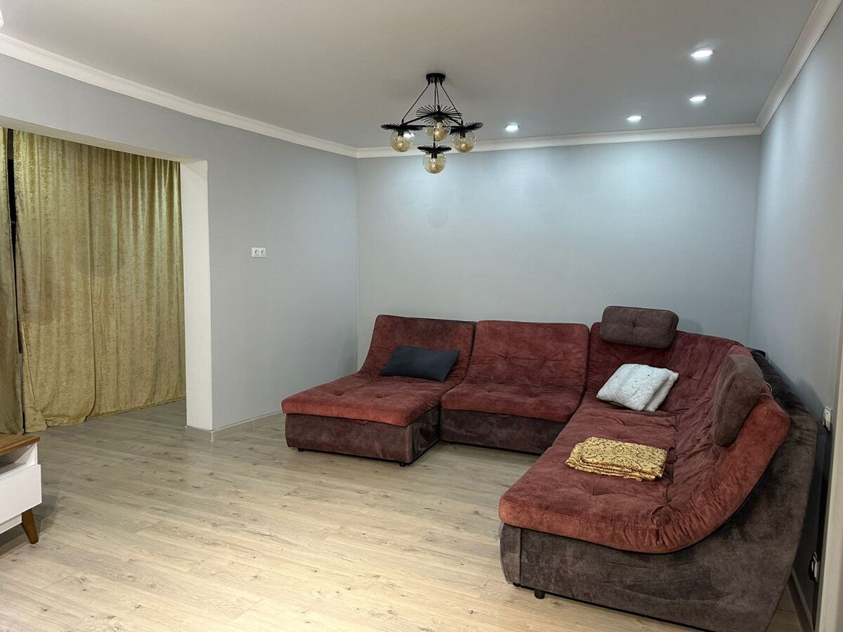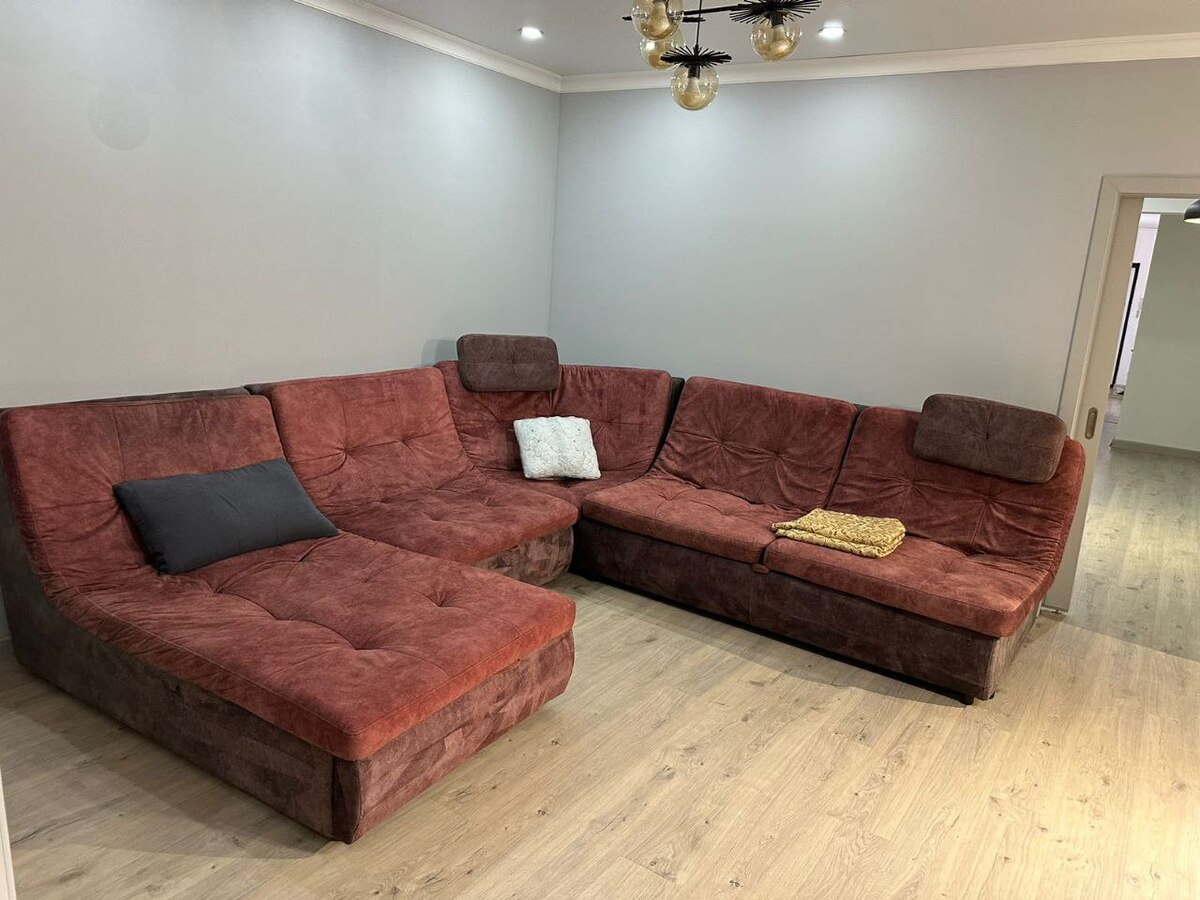 Квартира очень просторная, светлая, уютная, с очень доброжелательной и теплой атмосферой. Из всех окон открывается лучший вид на горы — можно наблюдать рассветы и закаты и любоваться горами с одного конца до другого.