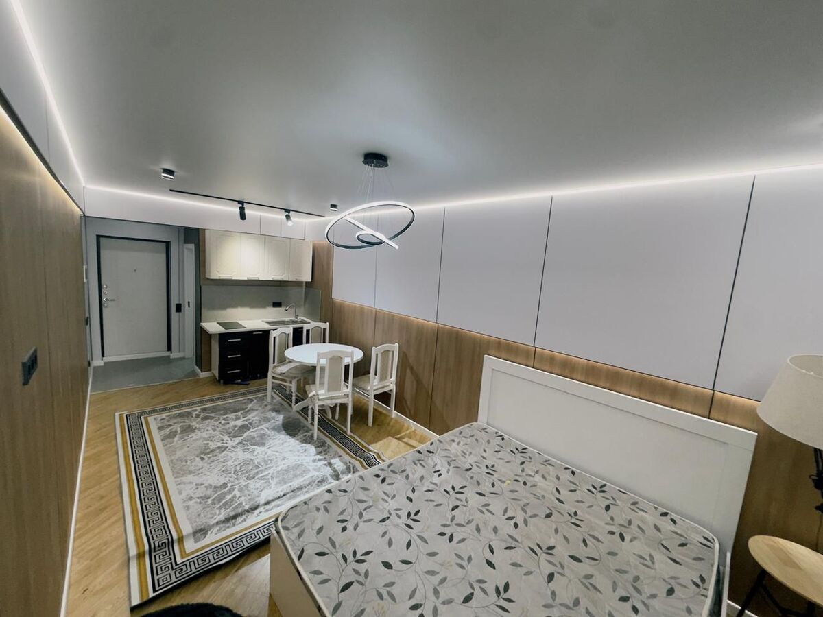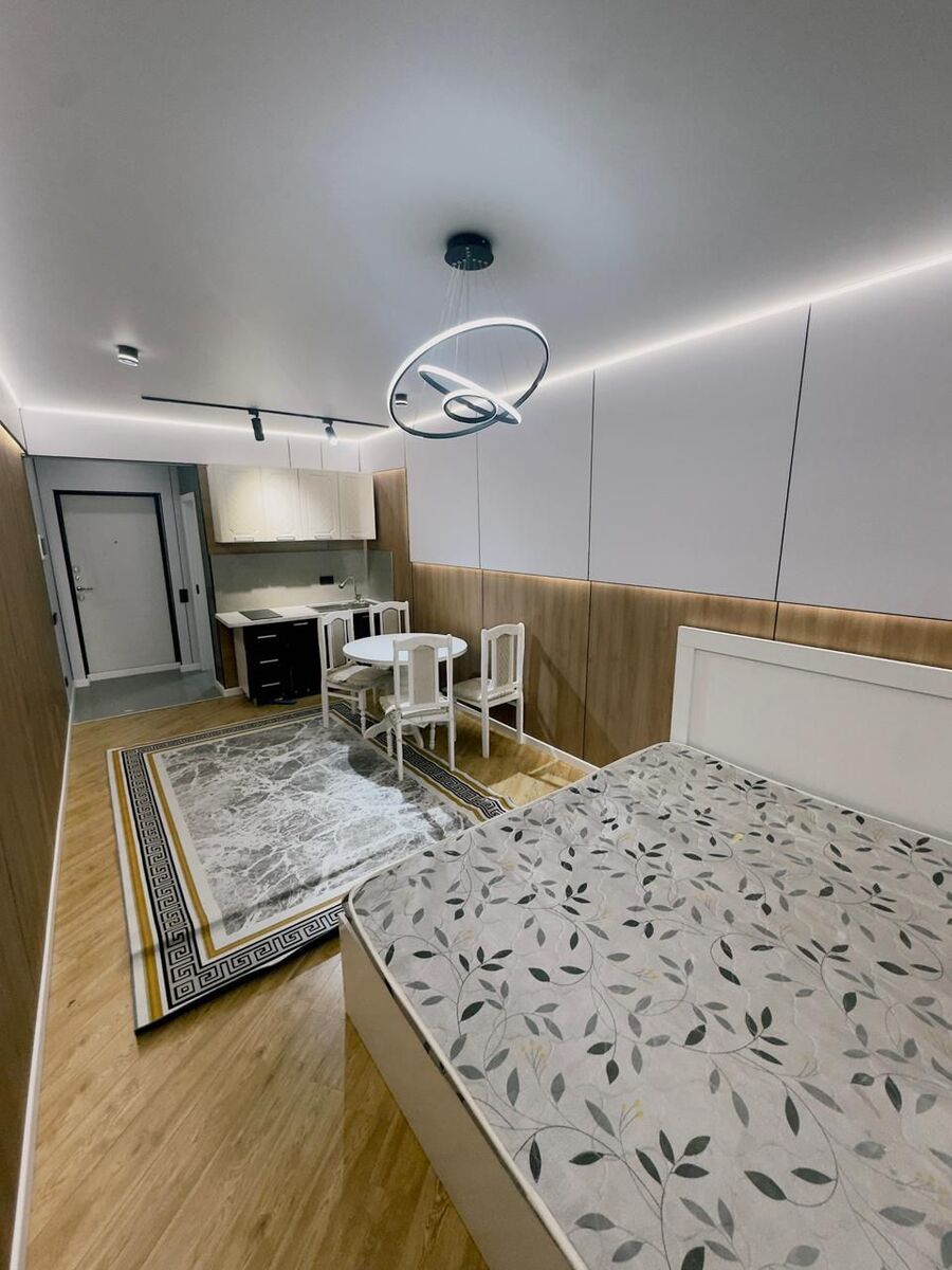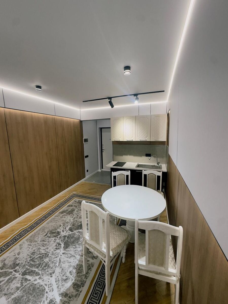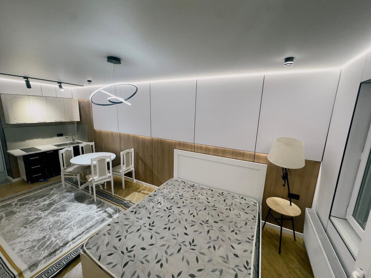 Окна во двор, полностью мебелировано, с дизайнерским ремонтом, современный стиль, шумо изолированный. Прекрасная панорама, город как на ладони. Не угловая. Квартира внутри в живую очень большая для кухни студии!