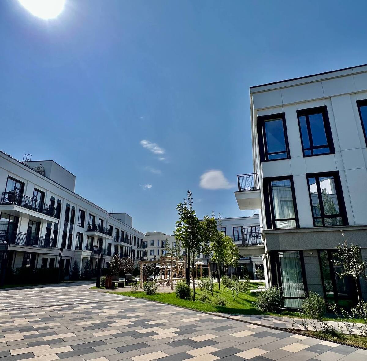 ✅ Благоустроенный двор, современные детские площадки, озеленение