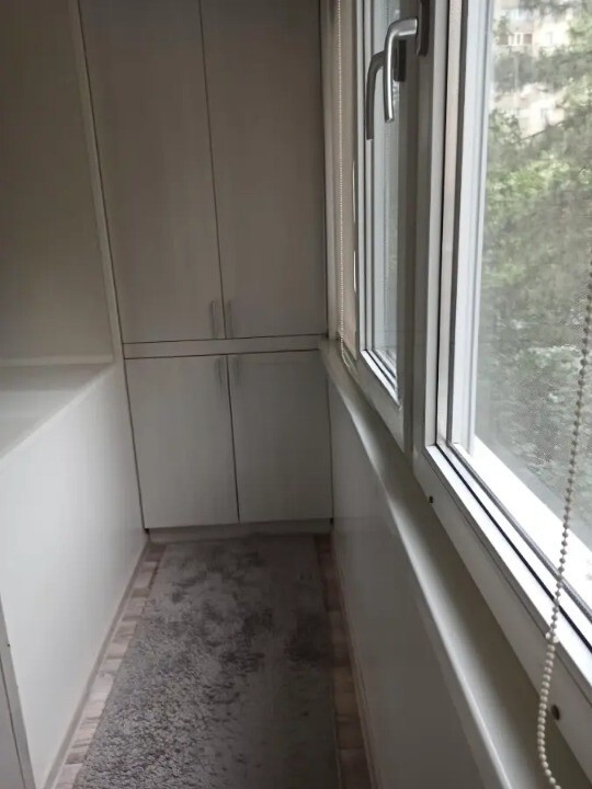 * Два застеклённых балкона: на одном установлены два шкафа, на втором — один, для удобного хранения вещей