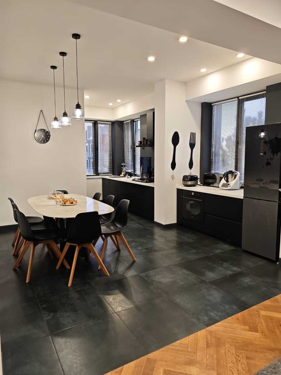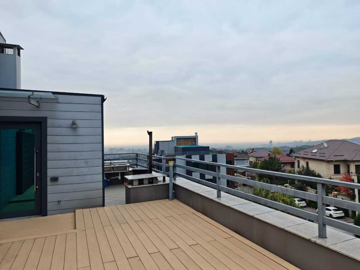 В доме 3 этажа, на каждом этаже по квартире. Обзор из квартиры на 360 градусов. На крыше уютная зона с сауной, бассейном, зоной барбекью и террассой, где можно проводить время отдыха с семьёй и гостями.