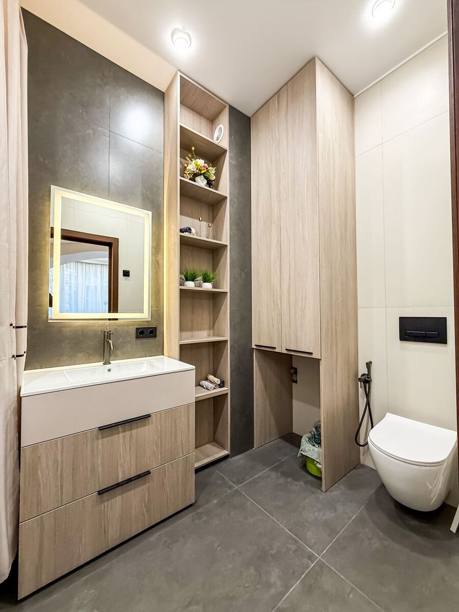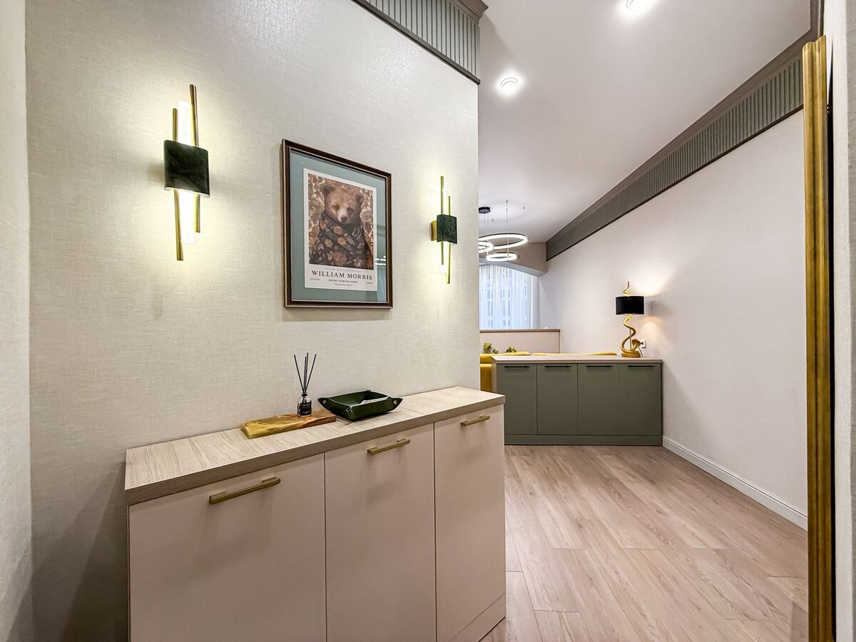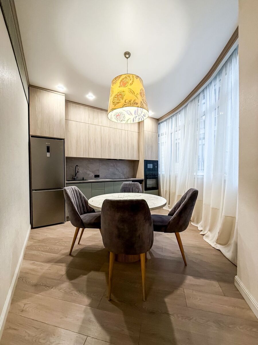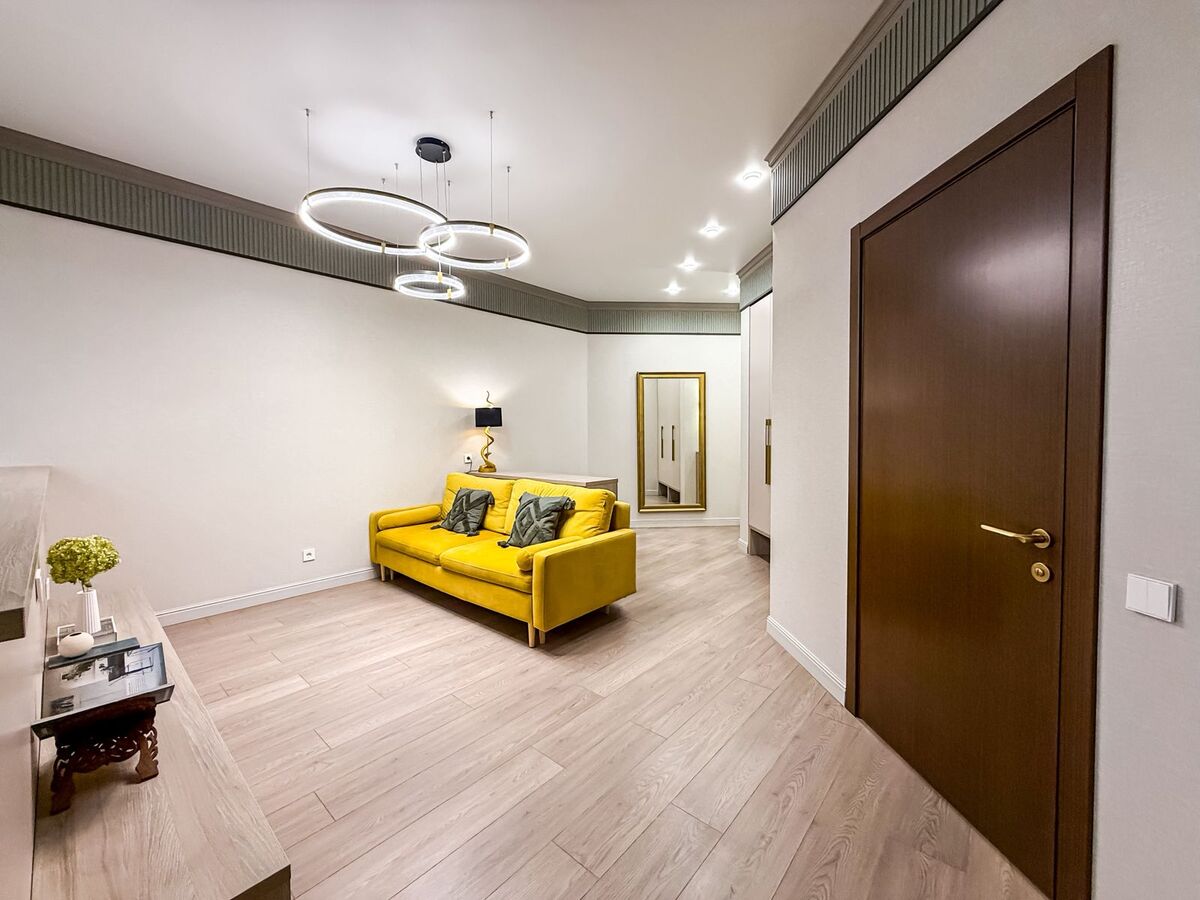 В квартире выполнен свежий евро-ремонт из качественных материалов: ровные стены, дорогая сантехника, современное освещение, теплые оттенки отделки. Большие окна наполняют пространство естественным светом, создавая атмосферу уюта и простора.