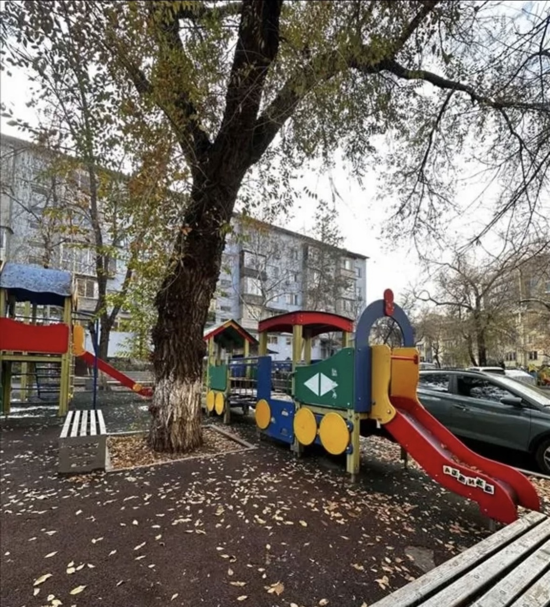 •Новая детская площадка в теньке.