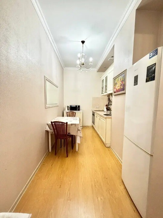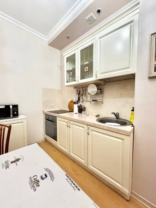 Кухня 'Под Ключ': Полностью оборудована — встроенные шкафы, вместительная рабочая поверхность, вся необходимая бытовая техника. Готовить здесь — одно удовольствие!